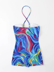 送料無料 2023 総柄プリントカットアウトワンピース水着ホルター水着女性水着水泳夏のビーチウェアボディスーツ サマー 夏物 AE1235655332215335160990