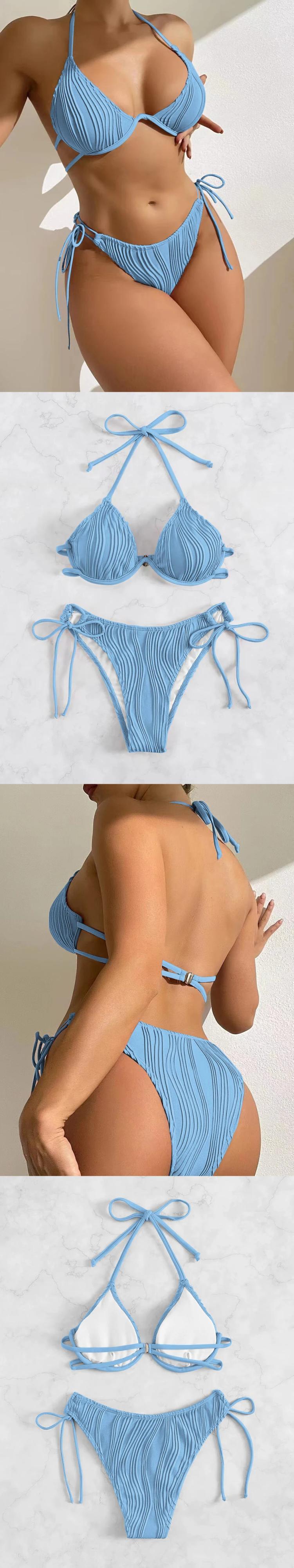 送料無料 Hater プッシュアップビキニ 2023 女性ストリング水着固体セクシーな水着海水浴水泳水着ビーチウェア ソリッドカラー AE1235655332250825416997