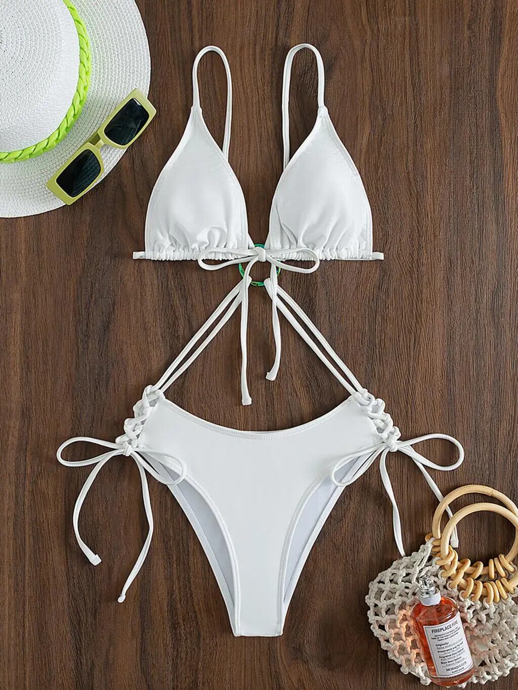 送料無料 ストリング三角ビキニ 2023 女性のセクシーな水着ホワイトリング水着ソリッドビーチウェア海水浴者水着水泳水着 指輪 ソリッドカラー AE1235655332269055738742