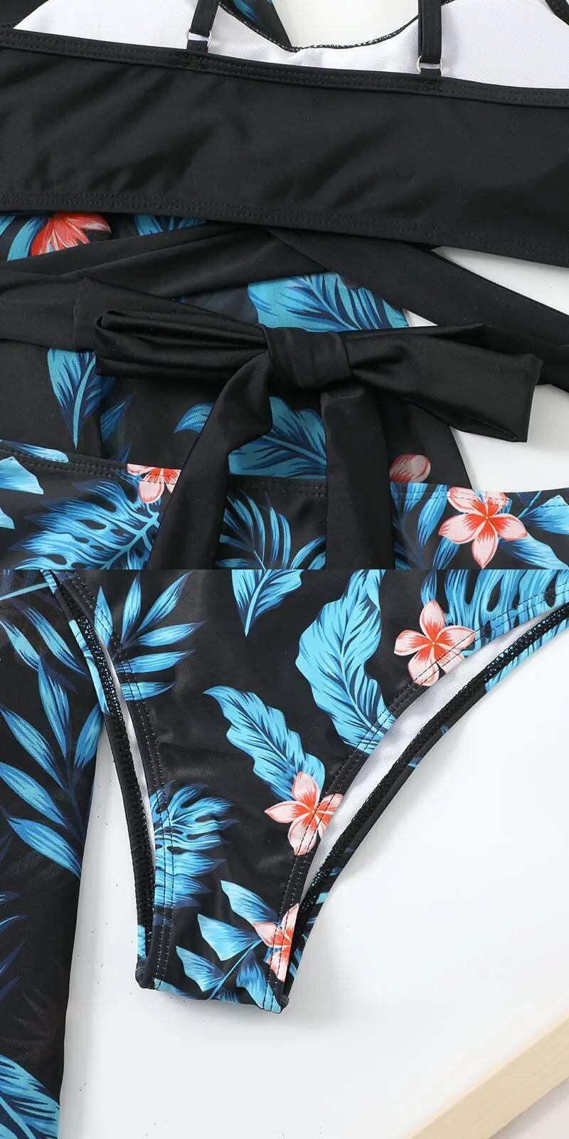 送料無料 セクシーなトロピカルプリントビキニ 2023 女性のウエスト水着カバーアップ水着女性水着水泳夏のビーチウェア サマー 夏物 AE1235655332238050450967