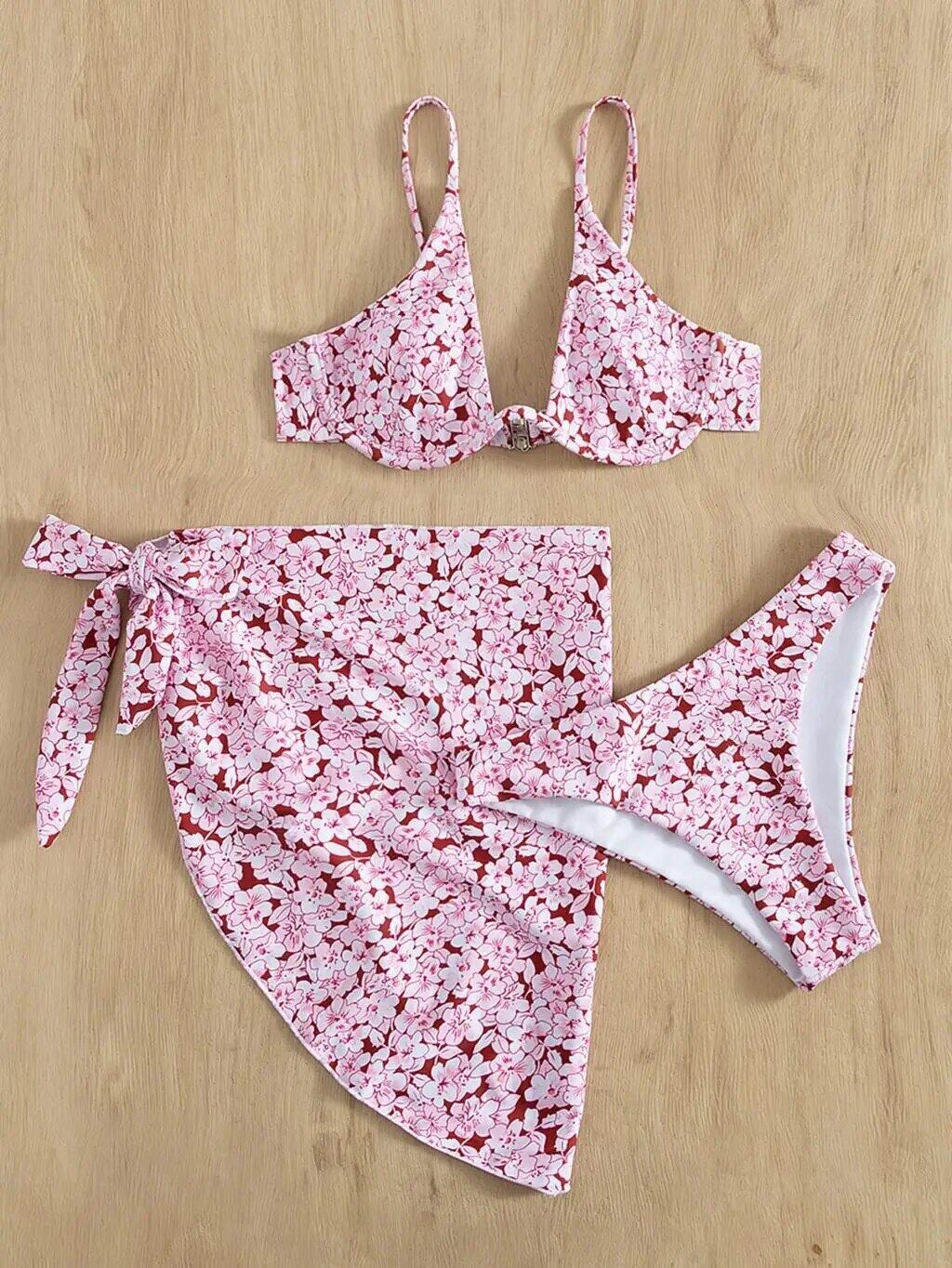 送料無料 3 パック花プッシュアップビキニ 2023 女性ビーチスカートセクシーな水着水着ビーチウェア海水浴者水着水着 花柄 AE1235655332292586537065