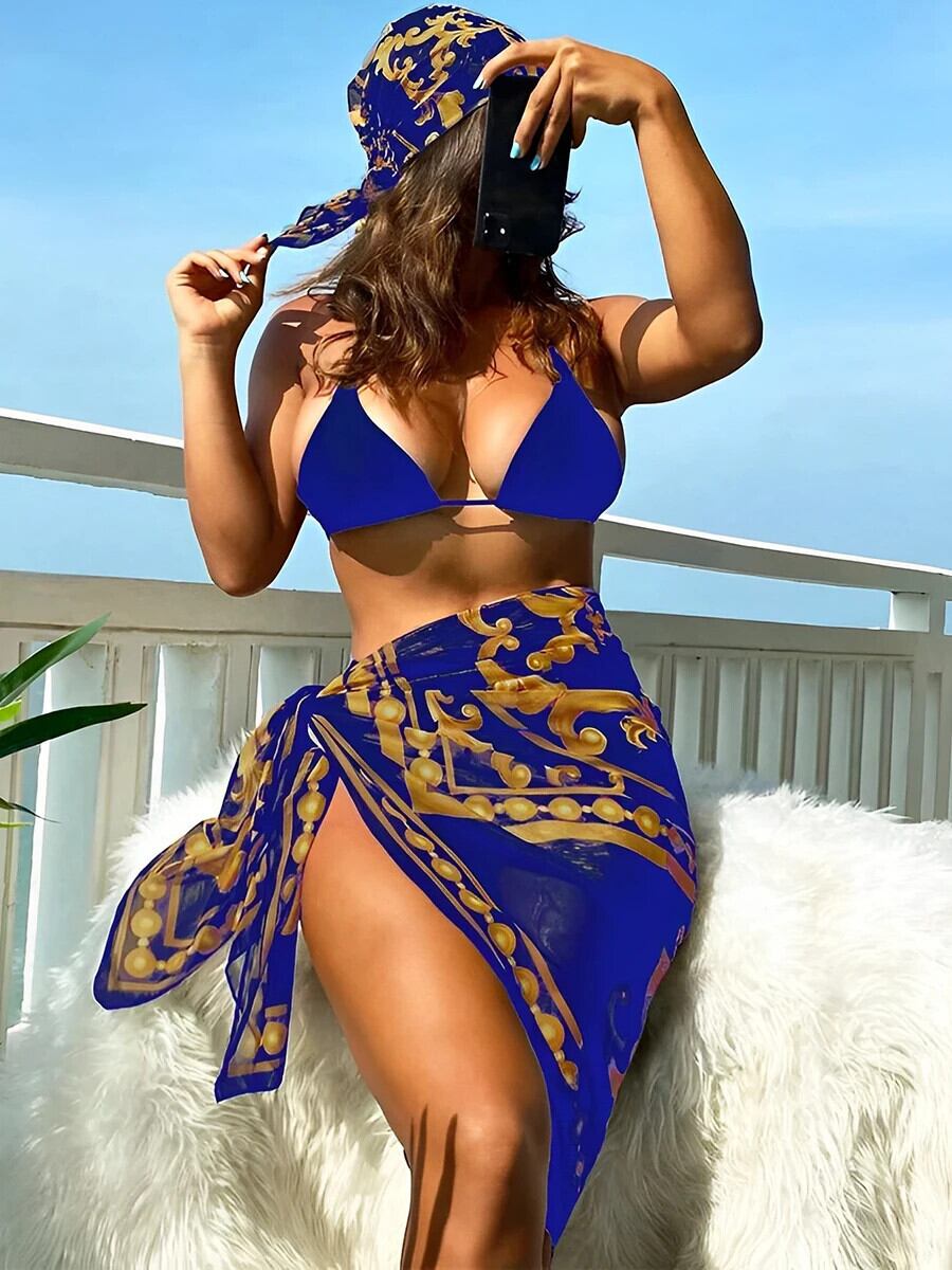 送料無料 4 ピース三角ストリングビキニ 2023 女性 & ビーチスカート水着固体水着海水浴水着ビーチウェア ソリッドカラー AE1235655332215099496898
