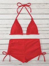 送料無料 2023 セクシーなストリング水着女性固体ホルター三角形ビキニウエスト水着フリル水着水泳ビーチウェア ソリッドカラー AE12356553322113106726