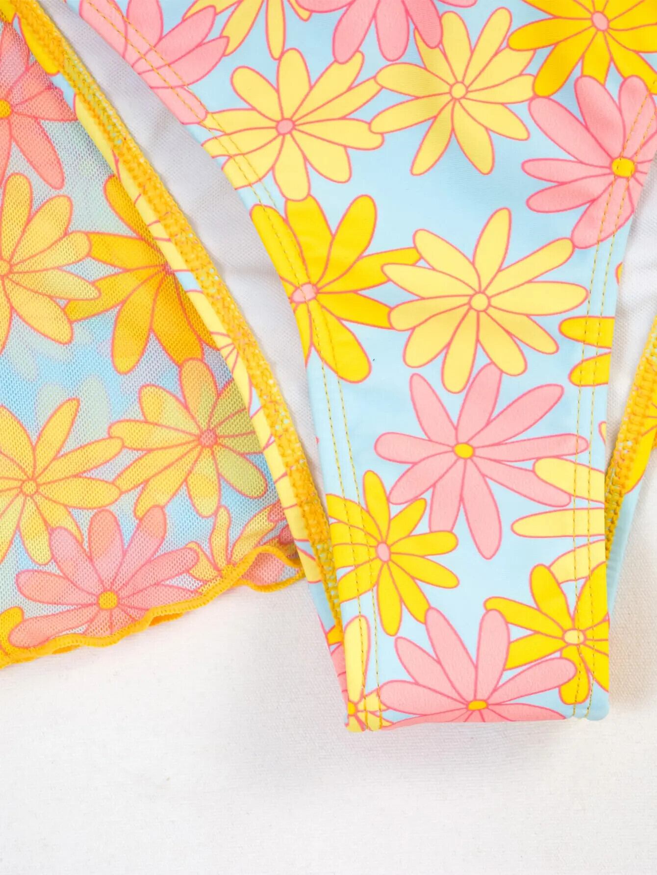 送料無料 3 個花柄ランダムプリントビキニ水着 & ビーチスカートセクシーな水着女性 2023 海水浴者水着水着 AE1235655332291652268358