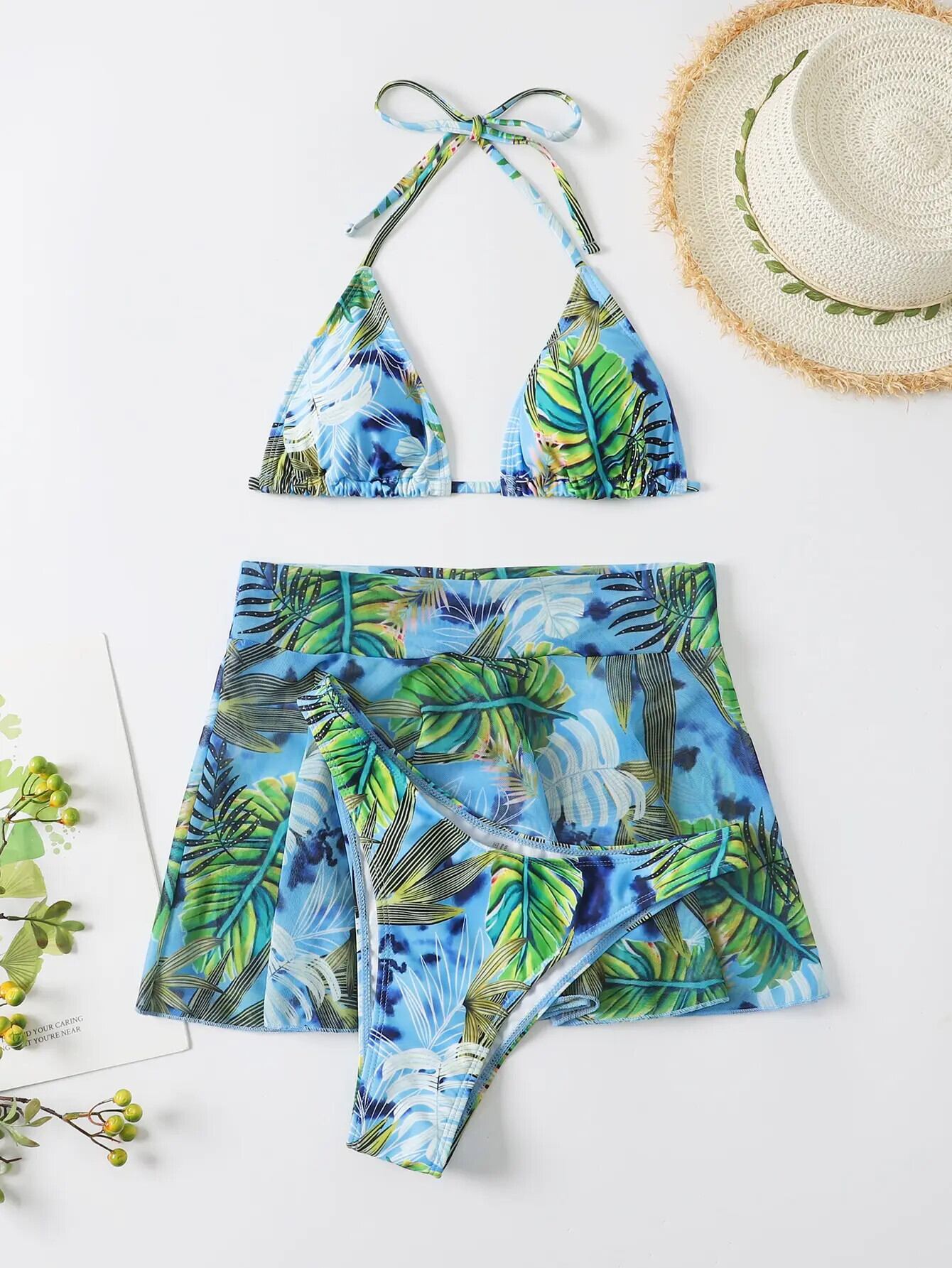 送料無料 3 個トロピカルプリントホルタービキニ 2023 水着 & ビーチスカート三角水着女性海水浴者水着水着 AE123565533225359827091