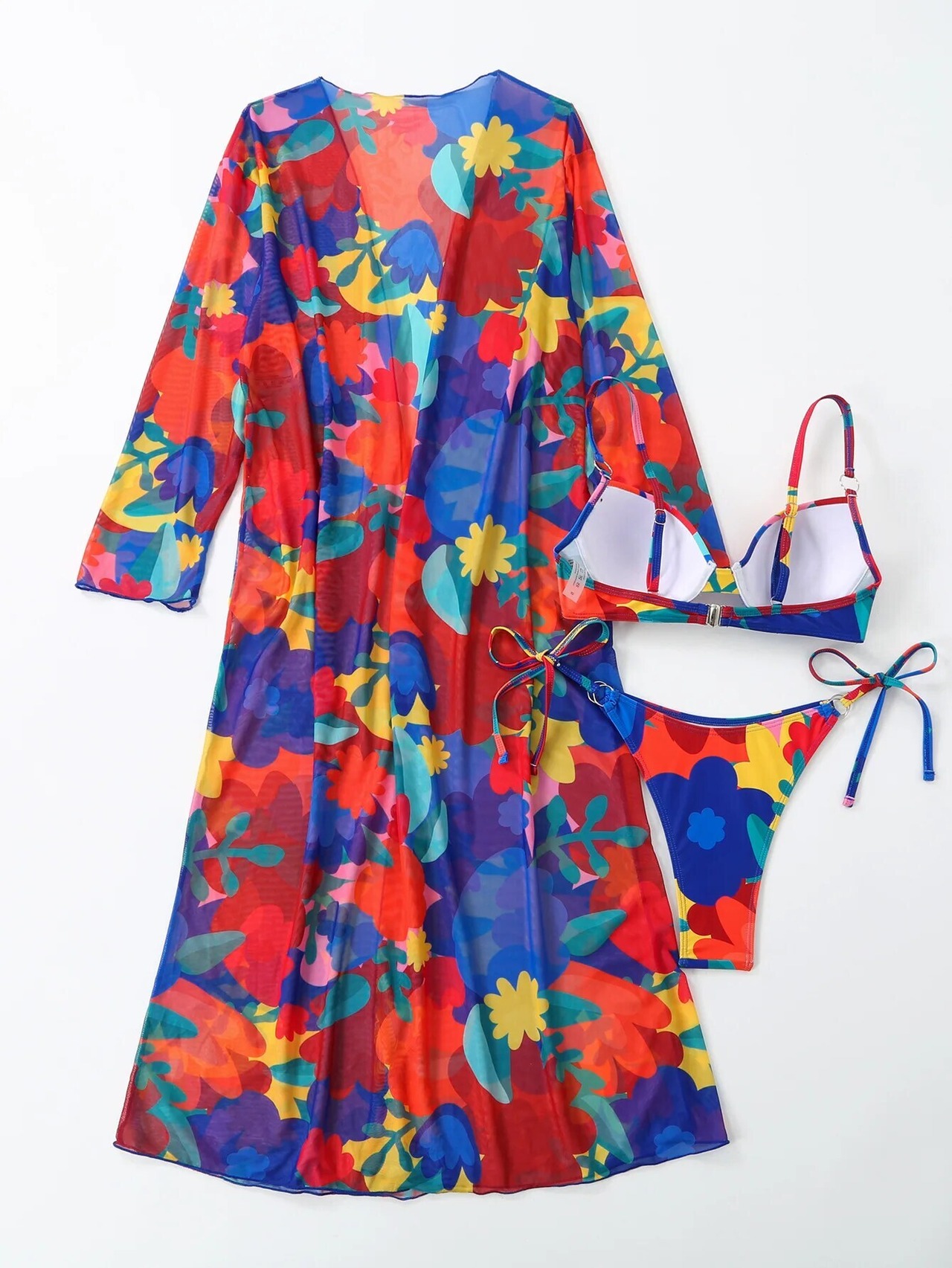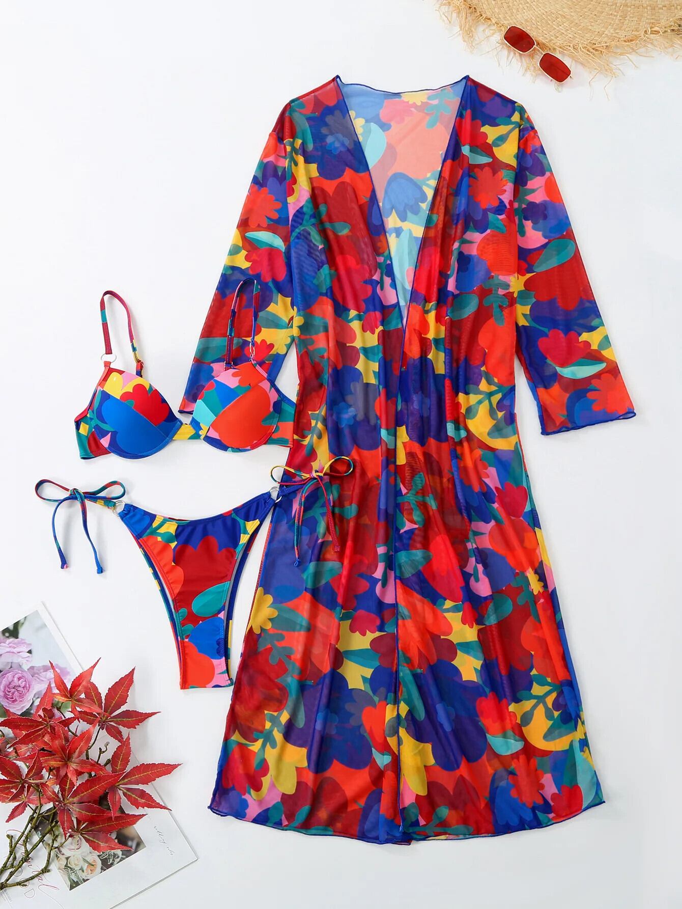 送料無料 3 ピースプッシュアップリングリンクビキニ 2023 女性 & プリント水着セクシーな水着入浴水泳水着 指輪 AE1235655332230631802130