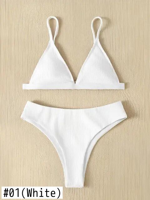 送料無料 2023 リブ白水着女性ソリッドウエストビキニストラップ水着海水浴水泳水着ビーチウェア ホワイト ソリッドカラー AE1235655332298527038287