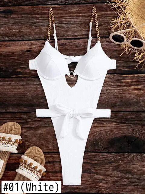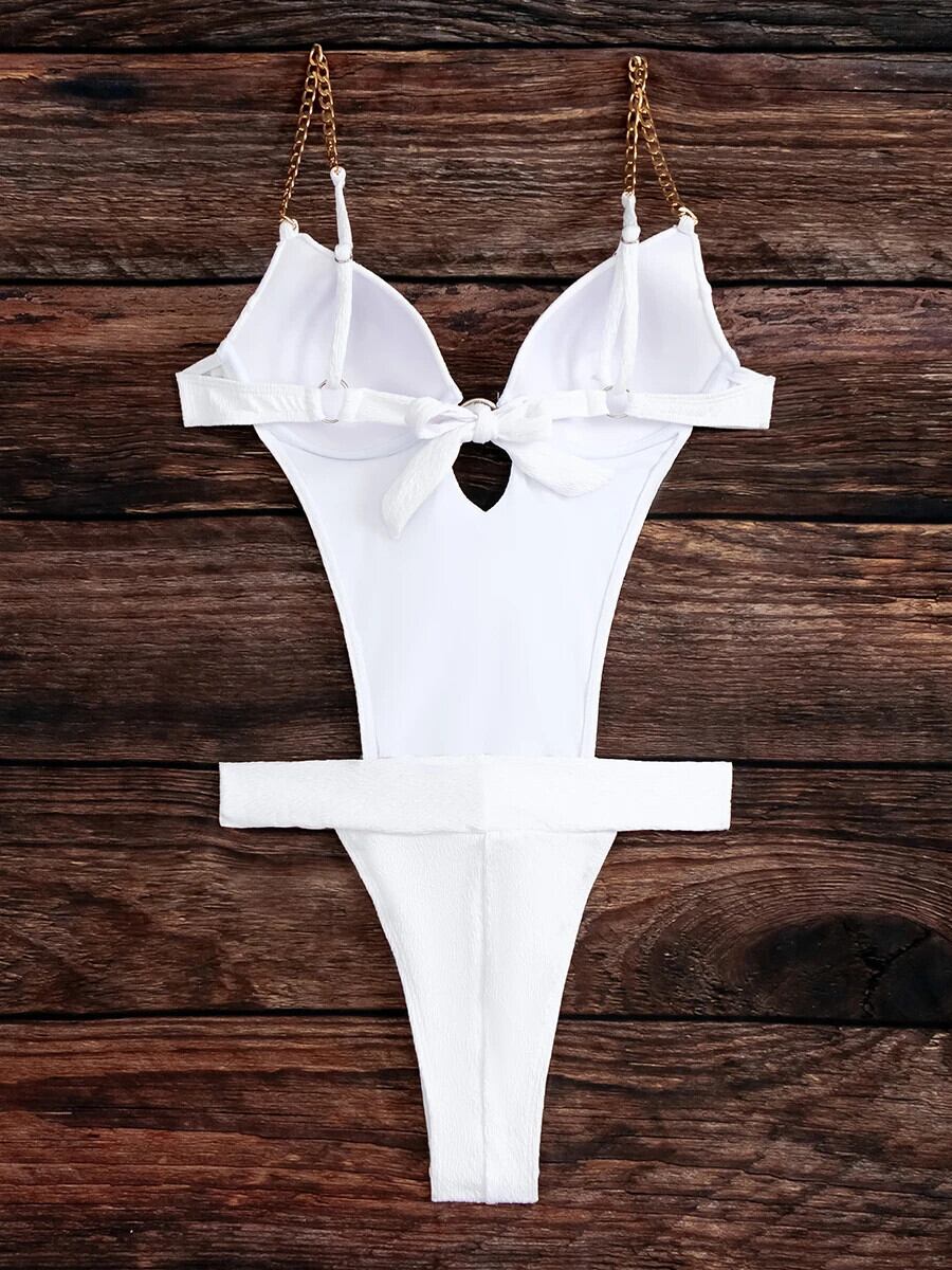 送料無料 2023 カットアウトチェーンリンク水着ワンピース固体モノキニ水着女性プッシュアップ水着水泳水着ビーチウェア ソリッドカラー AE1235655332225211657484