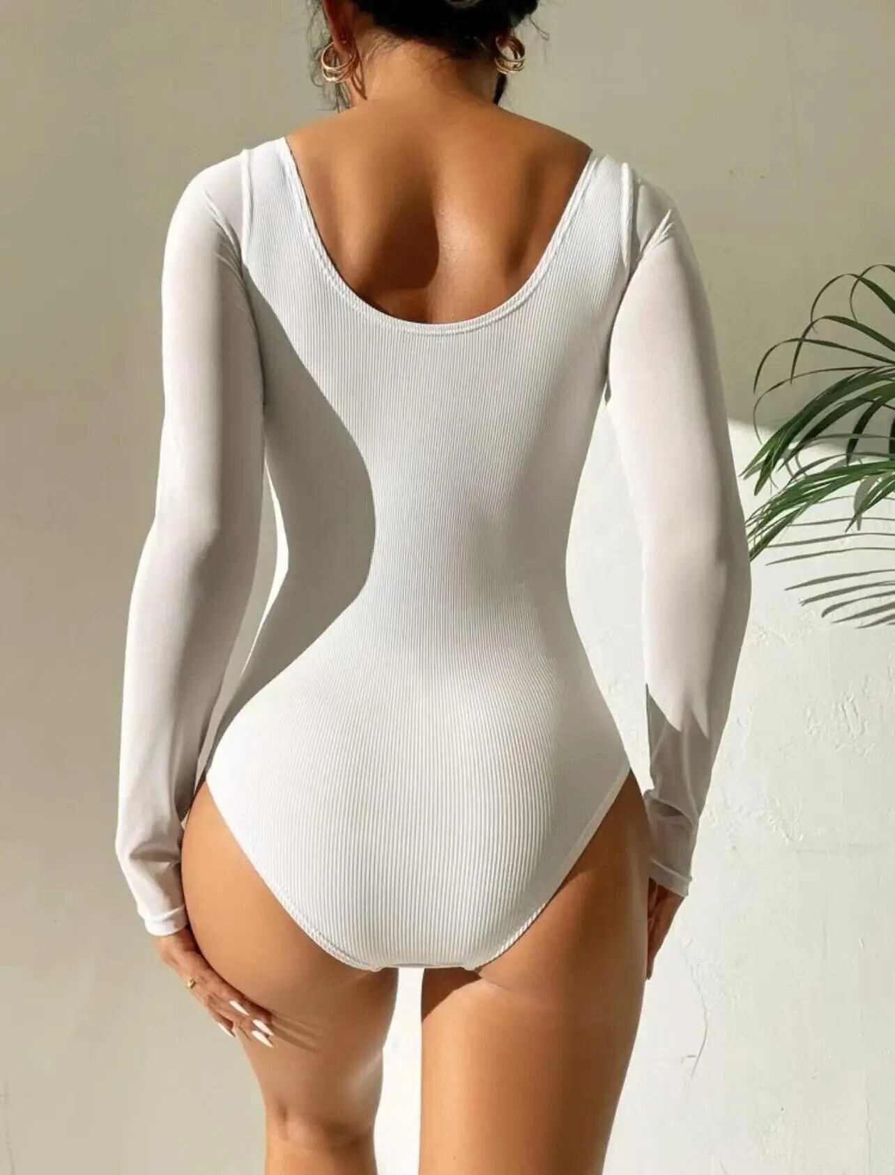 送料無料 2023 ホワイト水着ワンピース固体長袖水着女性水着カットアウト水泳夏のビーチウェアボディスーツ ロング サマー 夏物 ソリッドカラー AE1235655332295439705454