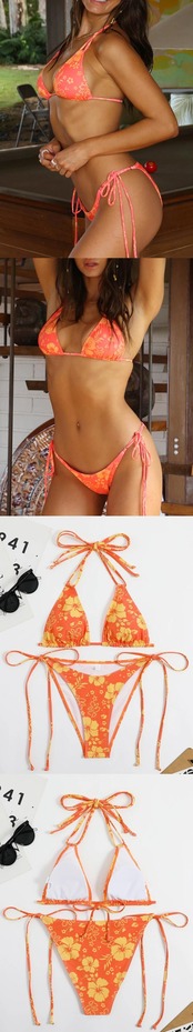 送料無料 プリントストリングビキニ 2023 女性のセクシーな三角水着ネクタイサイド水着パッド入り水着ビーチウェア夏 サマー 夏物 AE1235655332288281820187