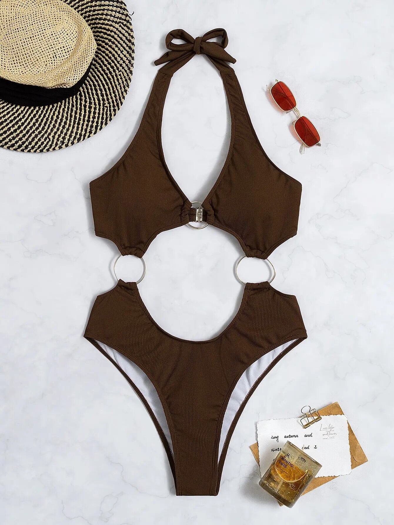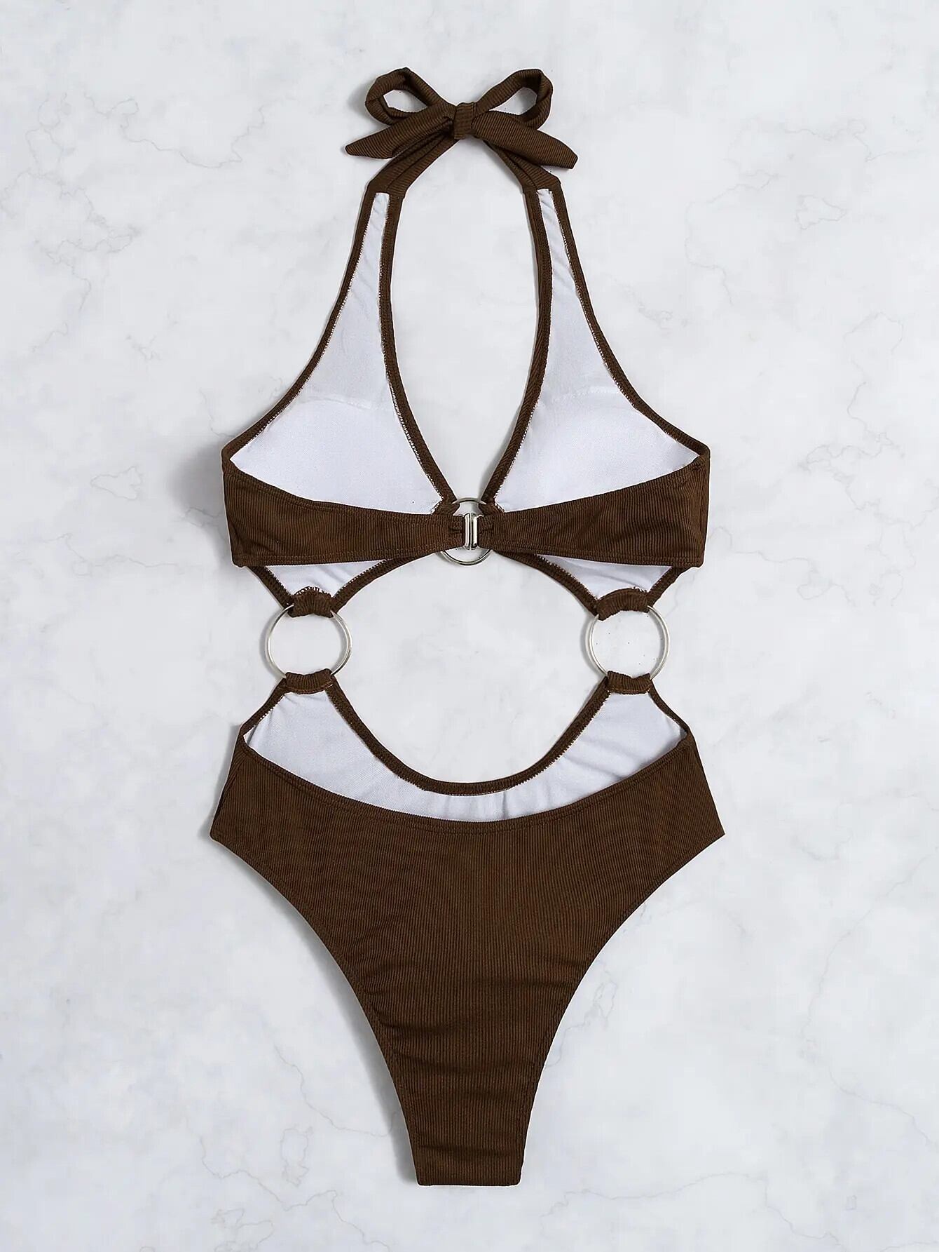 送料無料 モノキニ 2023 リングリンクワンピース水着固体ホルター水着女性水泳水着ビーチウェアボディスーツ 指輪 ソリッドカラー AE1235655332284136698946