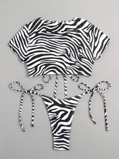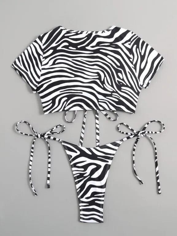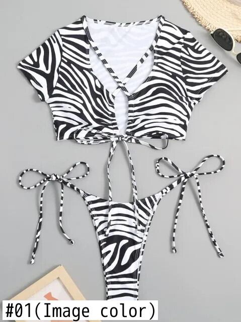 送料無料 2024 水着 ツーピース スプリットボディ 半袖 ゼブラプリント 黒と白 クロスボーダー世代 ホワイト ブラック ハーフスリーブ AE1235633554191990424