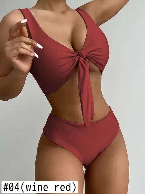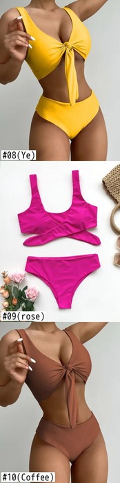 送料無料 2024 ビキニ水着-ウエストファブリックパンツギャザートップタイボウイエローブラックコーヒー人気の水着ビキニセット レッド リボン AE12356335544973180755