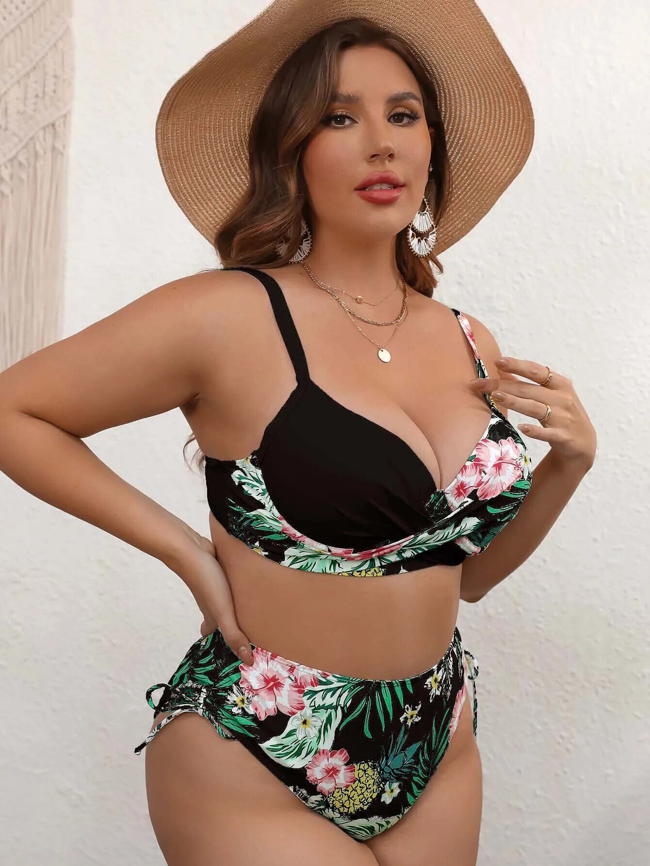 送料無料 2024 プラスサイズスカラップウエストビキニセット水着女性花セクシーな V ネック 2 枚ビーチウェア水着 Swi 大きめサイズ 花柄 Vネック AE12356335510559360326