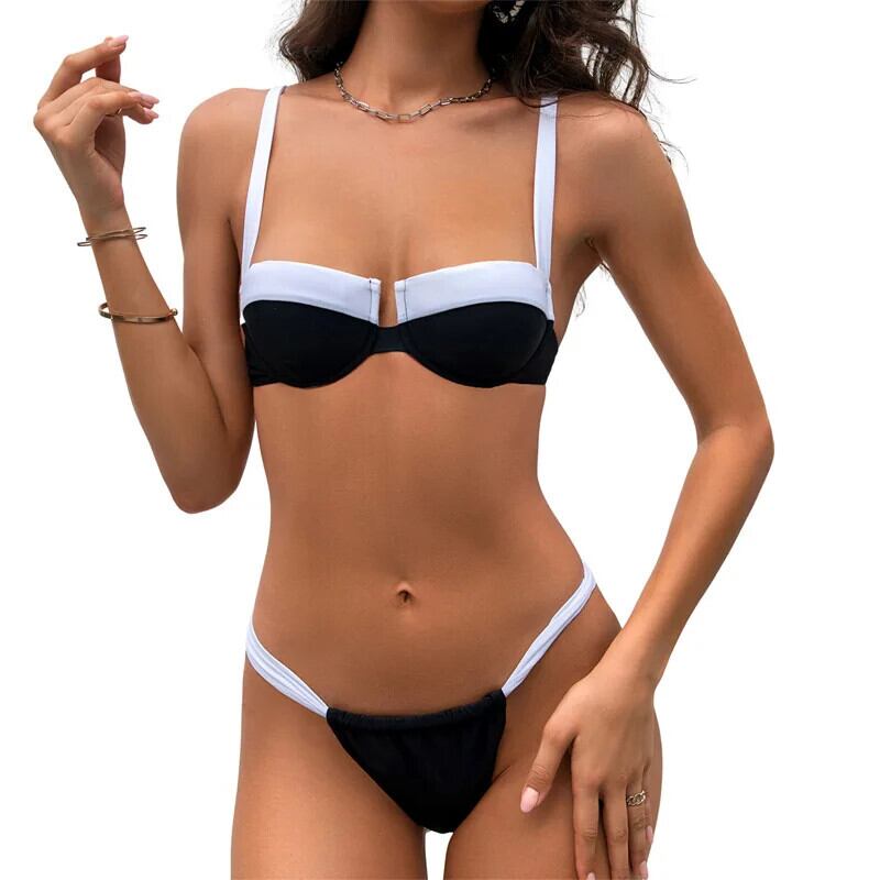 送料無料 セクシーなビキニ女性 2 点セットビキニウエスト Tバック水着女性水着三角水着ビーチウェア水着 AE12356335558532374334