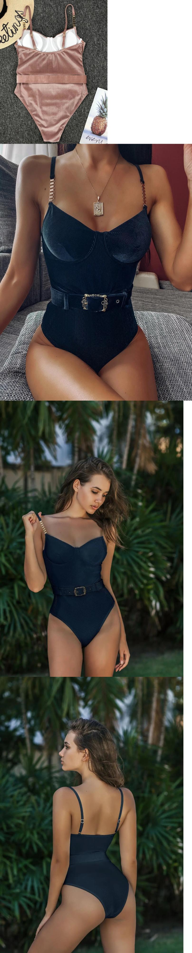 送料無料 セクシーなプッシュアップアンダー水着女性ソリッドホワイトブラックパッド入りバックルワンピース水着ビーチ水着ボディスーツモノキニ ソリッドカラー AE33232335575864194833