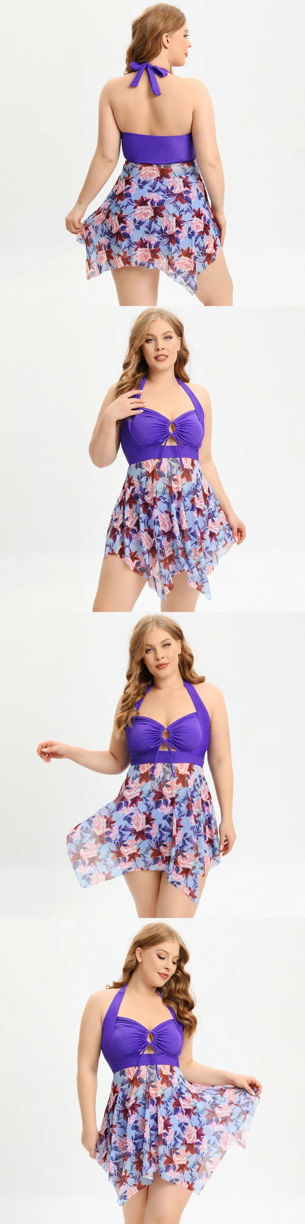 送料無料 2023 オーバーサイズ水着女性、ビーチスカート、フラワープリント、ハイウエスト、タンキニ、ツーピース水着、夏のモノキニ、サスペンダーバックレス ハイウェスト サマー 夏物 フラワーデザイン AE33232335592734070675