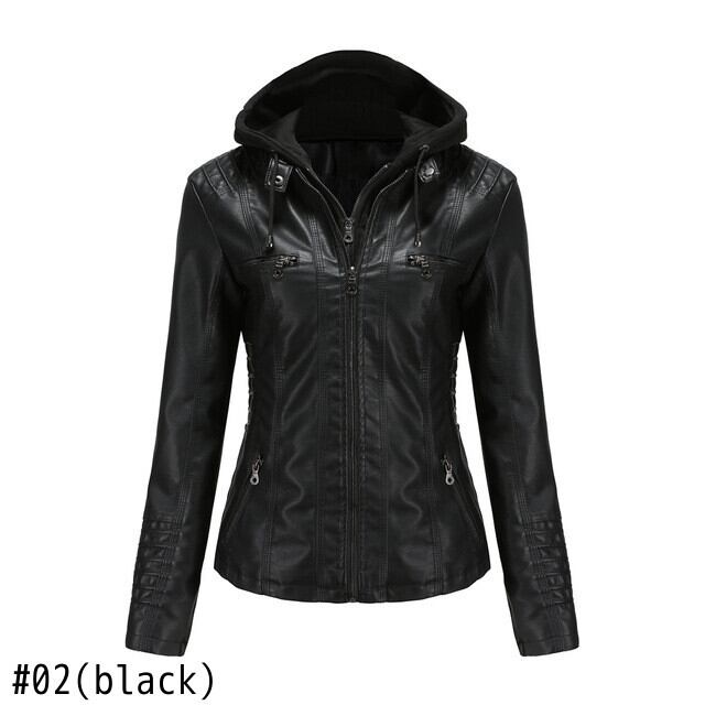 送料無料 フード付きレザージャケットの女性のツーピース取り外し可能な長袖レザージャケット PU 洗浄生地春と秋のコート NXH6699 ロング スプリング 春物 オータム 秋物 AE33232335513538189184