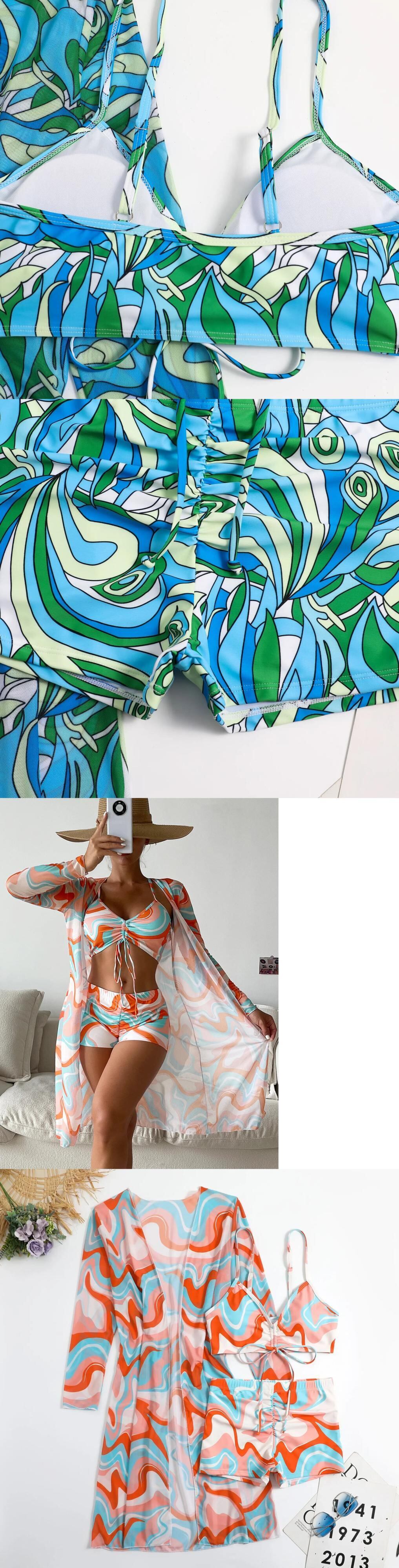 送料無料 セクシーなプリントスリーピース水着女性 2023 カバーアップ夏のウエストタンキニ長袖ビーチ水着モノキニ YJ2314 新しい ロング サマー 夏物 AE33232335588068974889