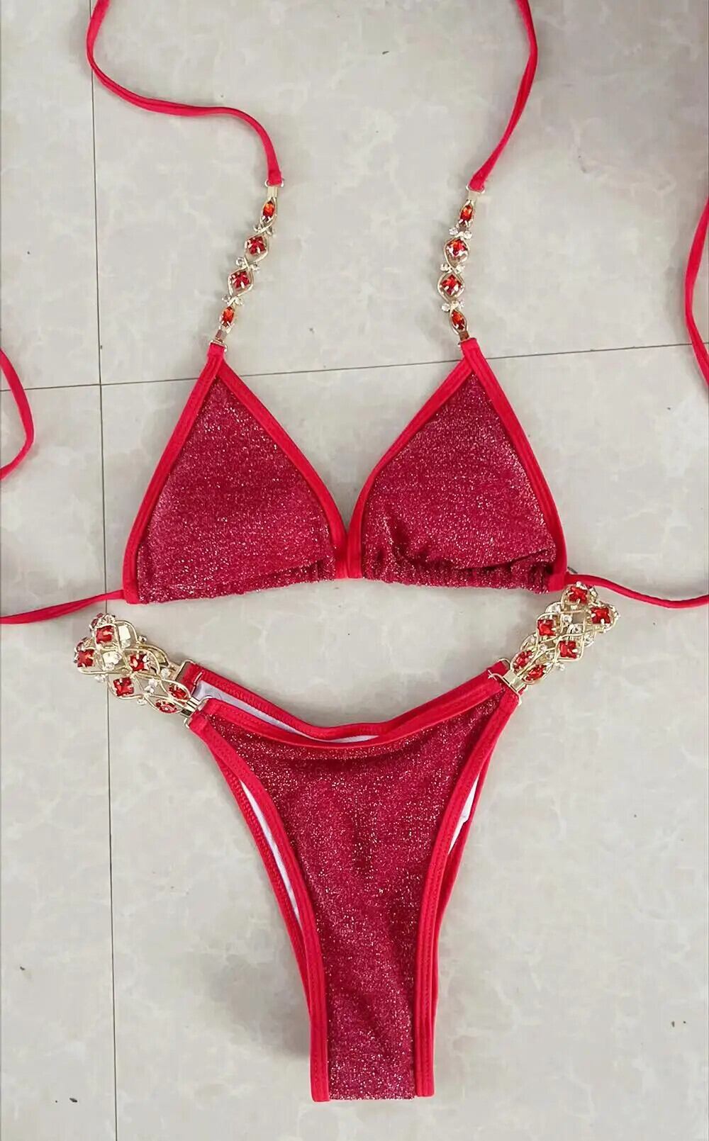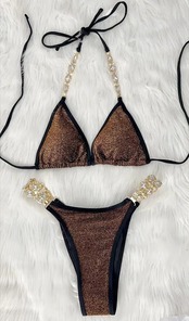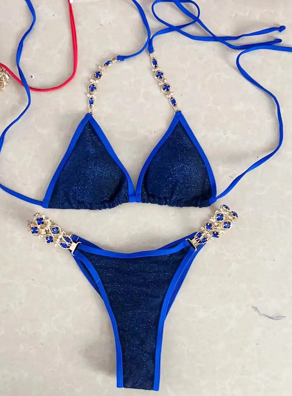 送料無料 2023 高級ラインストーンビキニ女性 2 ピースダイヤモンド水着三角カップホルター水着ローウエスト Tバックビーチ水着 AE33232335523857281173