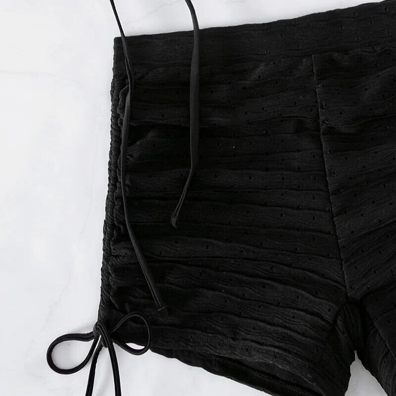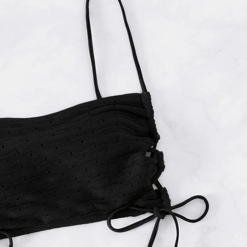 送料無料 固体黒ビキニ女性 2023 2 ピースウエスト水着セクシーな巾着サスペンダー背中の開いた水着ビーチウェア OLDL058 ブラック ソリッドカラー AE33232335575568926133