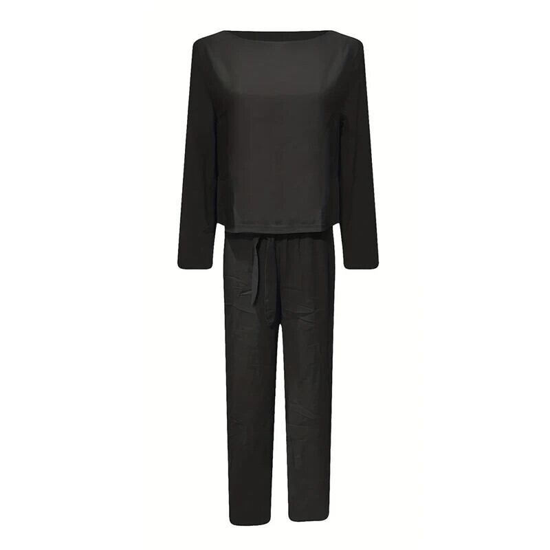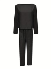 送料無料 ソリッドカラーパンツスーツ女性、2023、レースアップ、ラウンドネック、長袖、プラスサイズ、ポリエステル、秋、冬、ファッション、、XL-5XL ロング 大きめサイズ オータム 秋物 ウィンター 冬物 Oネック AE33232335530853703007