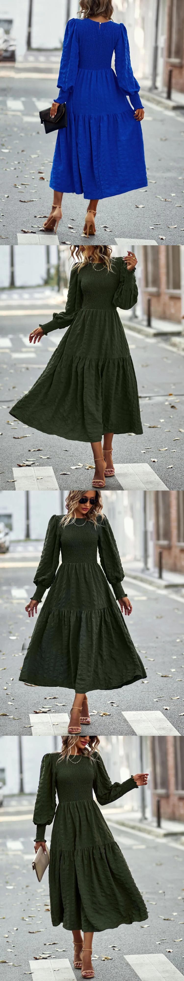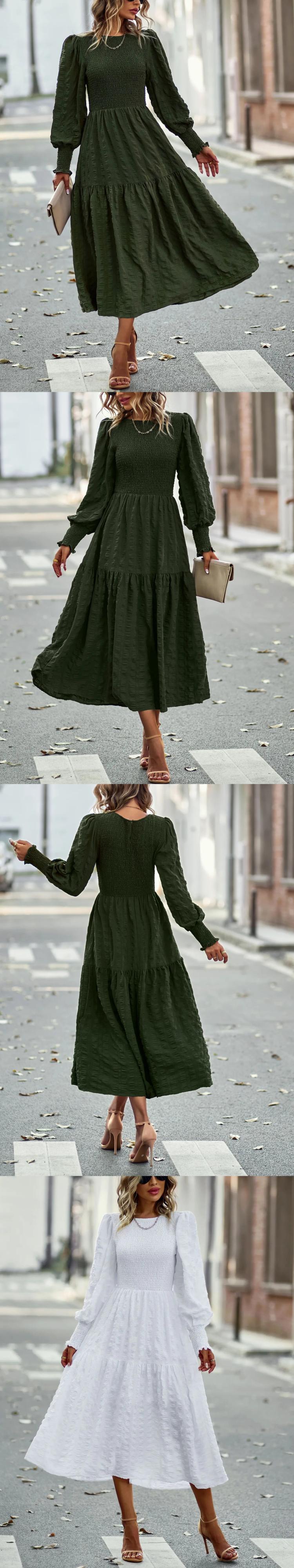 送料無料 2024 ソリッドカラー大スイングドレス秋/冬ラウンドネック気質スリム長袖 A ラインドレス ロング オータム 秋物 ウィンター 冬物 Oネック Aライン AE3323233551430934683