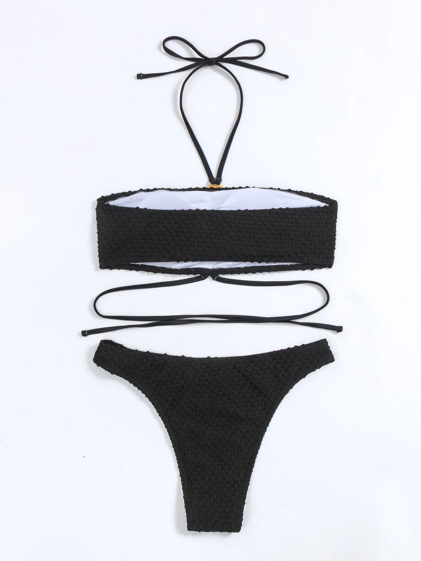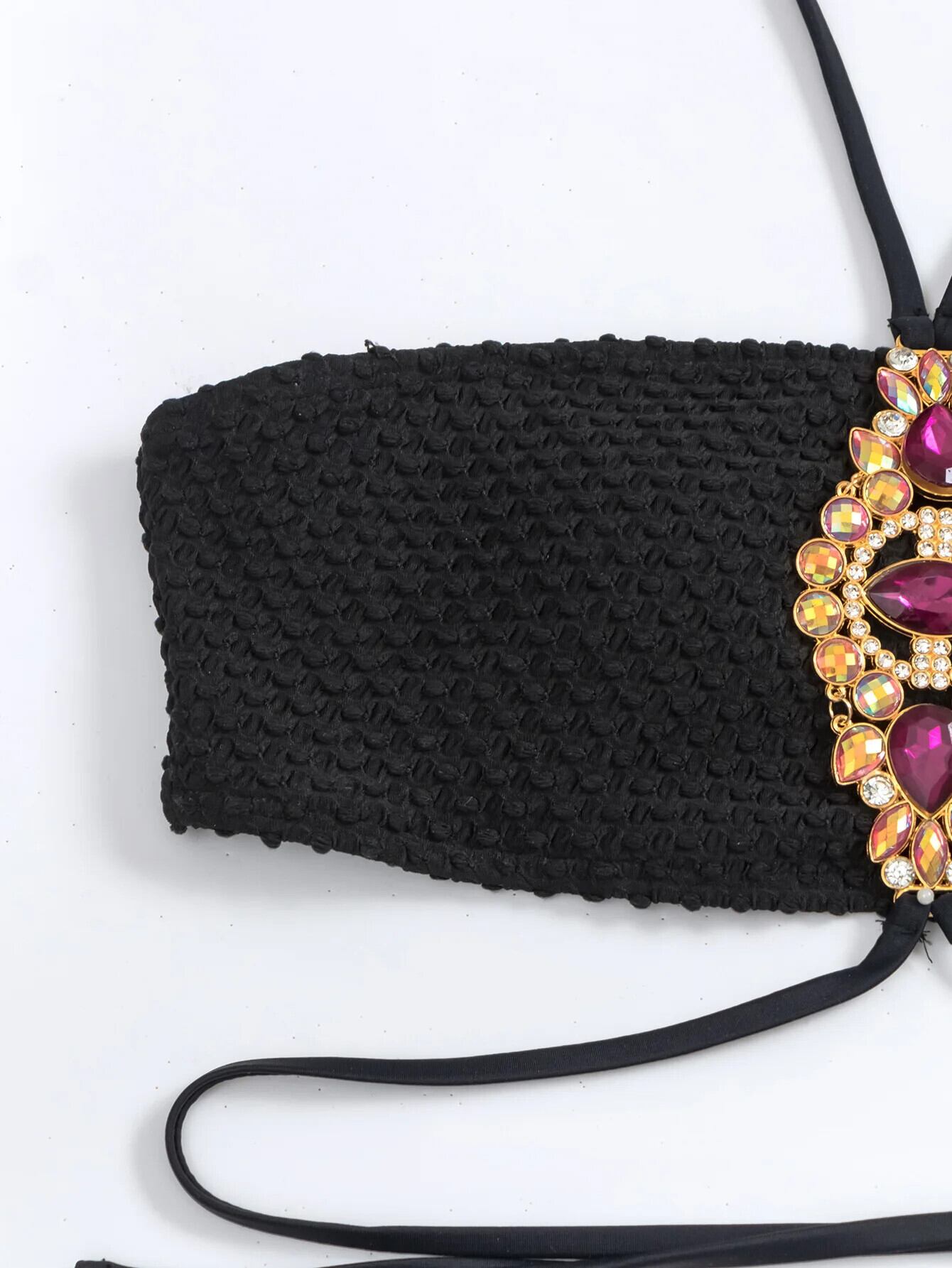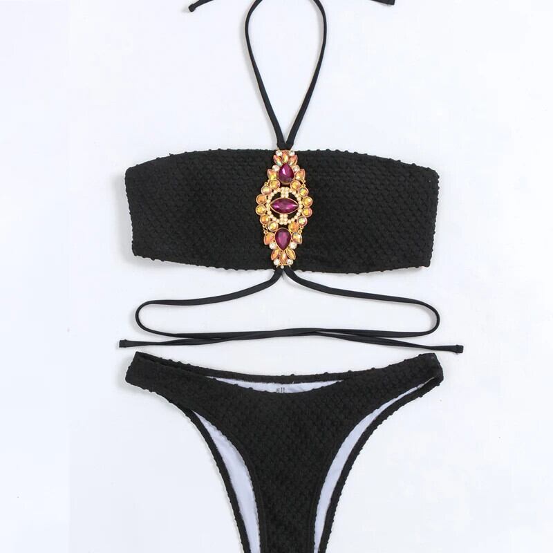 送料無料 2023 女性のラインストーンビキニセットツーピースウエスト水着ホルターサスペンダー胸ラップ水着夏のビーチ水着 サマー 夏物 AE33232335538777827000