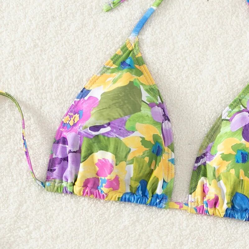 送料無料 4 ピース水着女性 2023 プリントウエストスカートビキニ三角カップスリングビーチ水着頭飾り水着 OLDL078 AE33232335539244800445