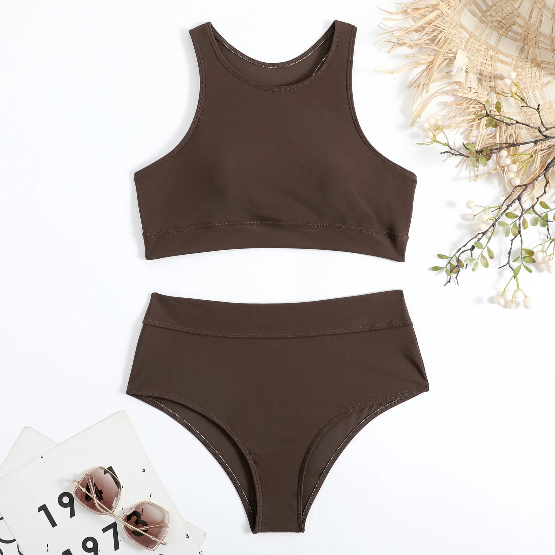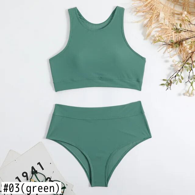 送料無料 2023 リーフプリントビキニ女性のセクシーなウエスト 2 ピースタンキニ水着セクシーな U ネックビーチ水着無地夏の水着 サマー 夏物 ソリッドカラー AE33232335587127843882