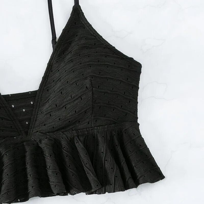 送料無料 2023 ソリッドカラーのウエスト水着女性フリル 2 ピースビキニ女性のセクシーな V ネック水着ウエスト背中の開いたビーチウェア Vネック AE3323233555176610470