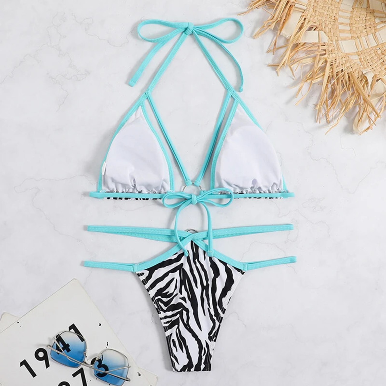 送料無料 ゼブラストライプ水着 2023 女性のセクシーな中空アウト 2 ピースビキニウエスト Tバックサスペンダーモノキニ夏のビーチ水着 サマー 夏物 AE33232335511424324786