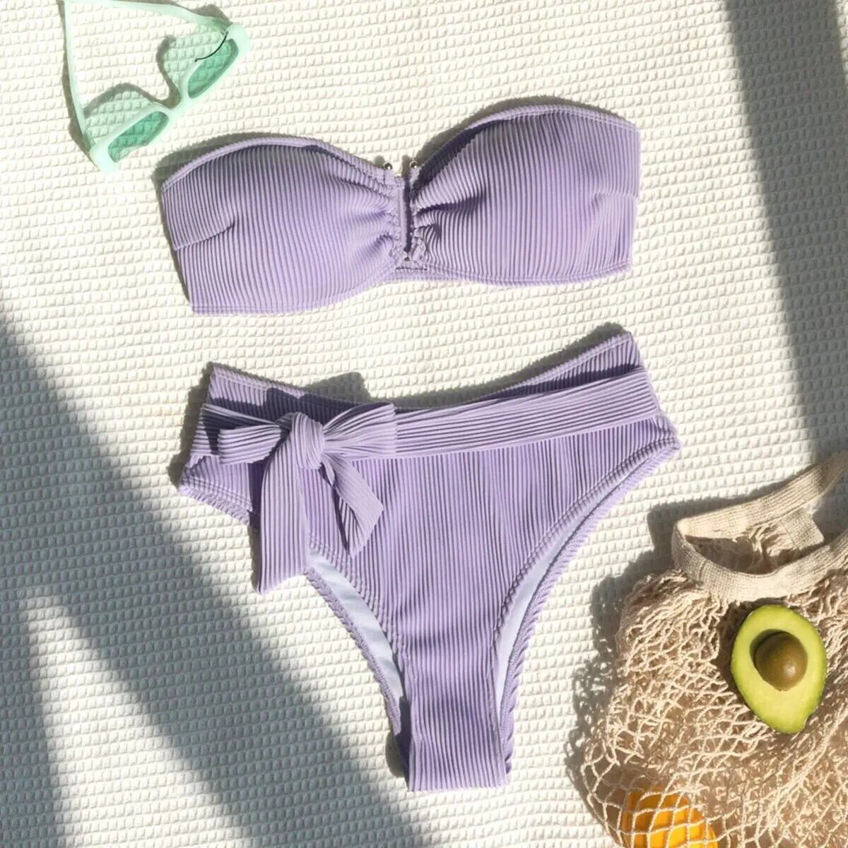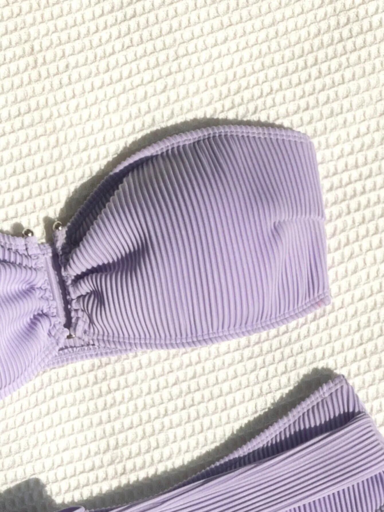 送料無料 ライトパープルウエスト水着女性 2023 2 ピースストラップレスビキニセクシーなバンドゥ背中の開いた水着夏のビーチ水着 サマー 夏物 AE3323233551903889739