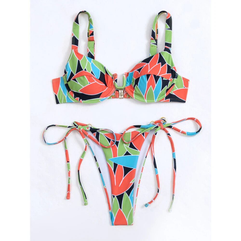 送料無料 2023 マルチカラーマッチング水着女性のセクシーな U ネックアンダーワイヤー 2 ピース分割ビキニサスペンダー背中の開いたローウエスト Tバック水着 AE33232335586520082896
