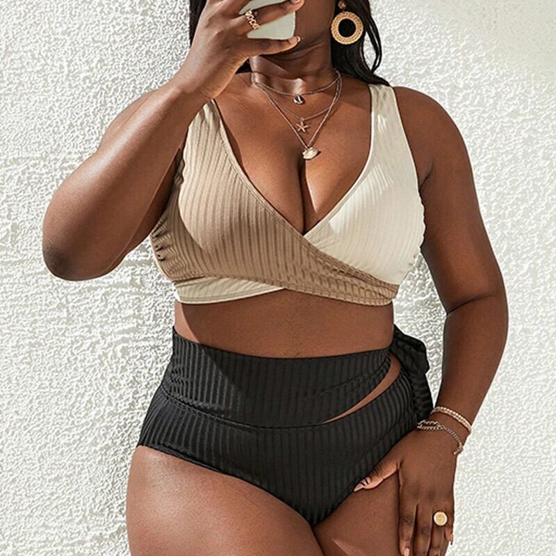 送料無料 オーバーサイズソリッドカラーパッチワークスプリット水着女性、2024夏ツーピースビキニ、ハイウエストバックレスVネック水着 ハイウェスト サマー 夏物 AE3323233552534160703