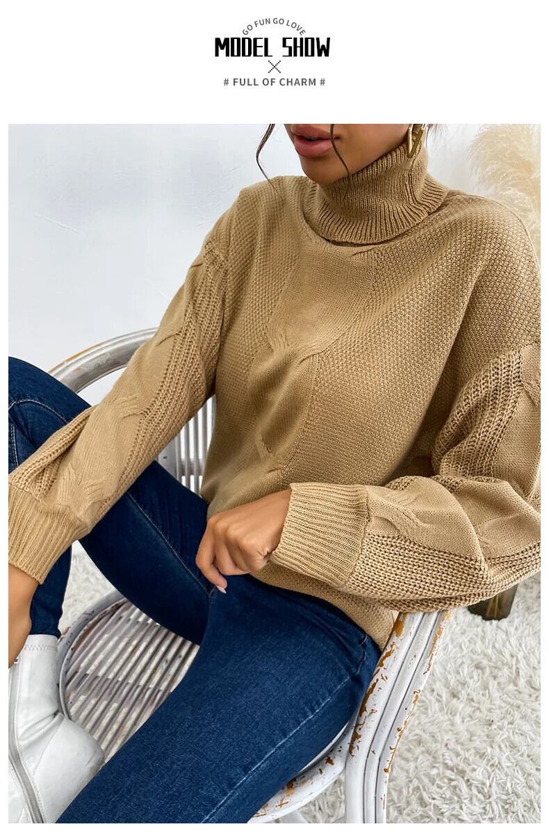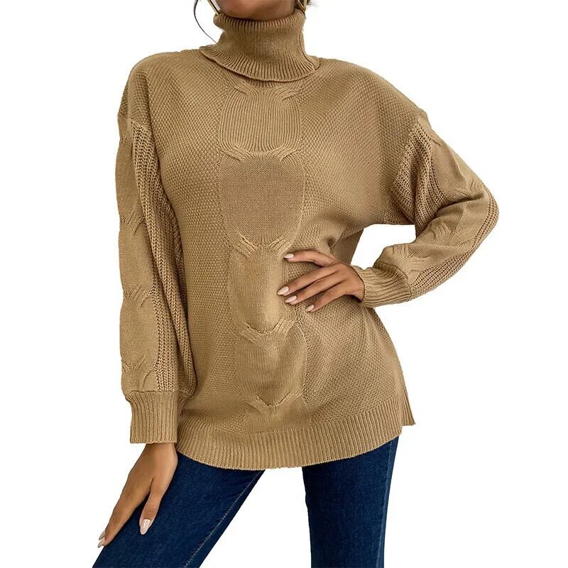 送料無料 2024 ソリッドカラーニットセーター女性秋/冬暖かい長袖襟プルオーバーミッドレングスルーズセーター ロング オータム 秋物 ウィンター 冬物 AE33232335521669276416