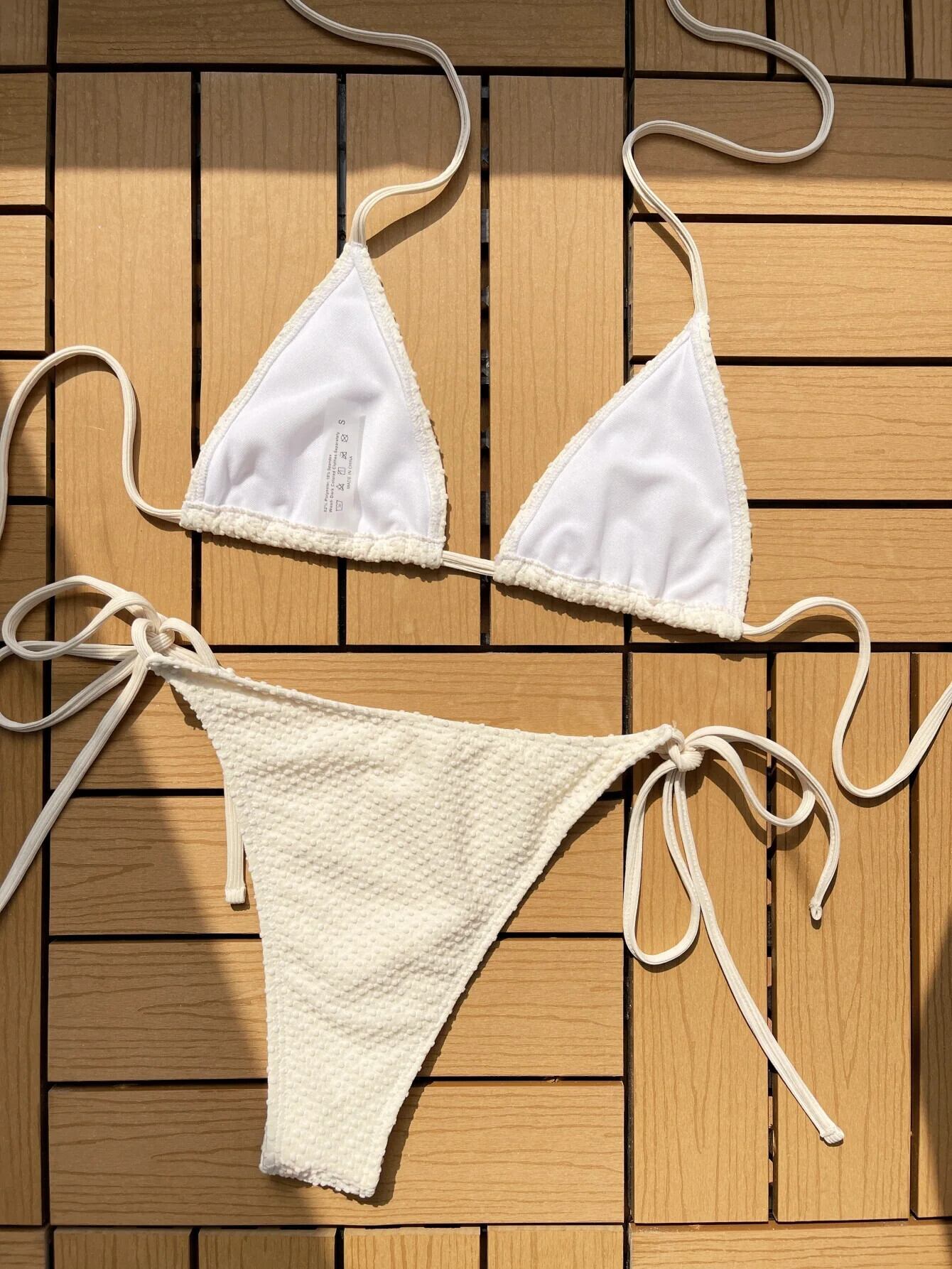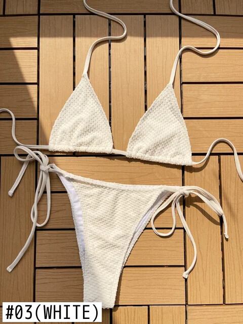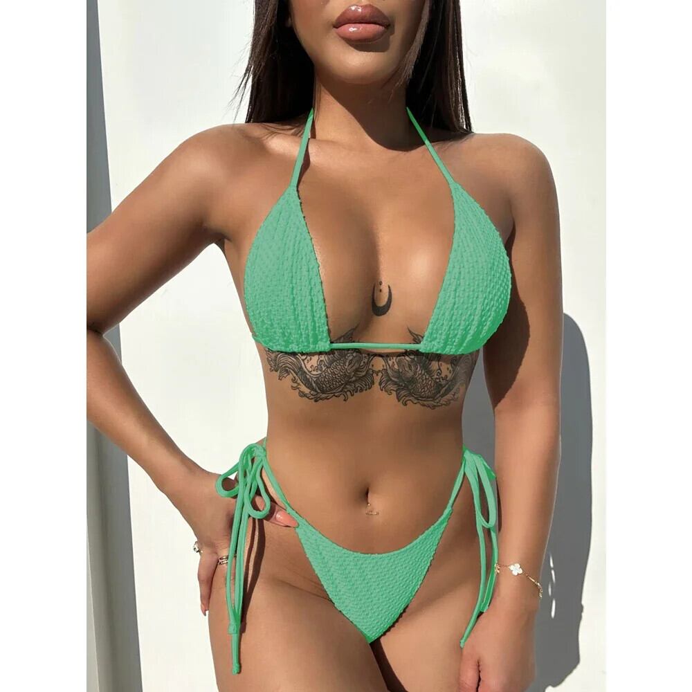 送料無料 ソリッドカラーローウエスト Tバック水着女性 2024 夏 2 ピースミニビキニセクシーなホルター背中の開いた水着ビーチ水着 サマー 夏物 AE33232335561643649818