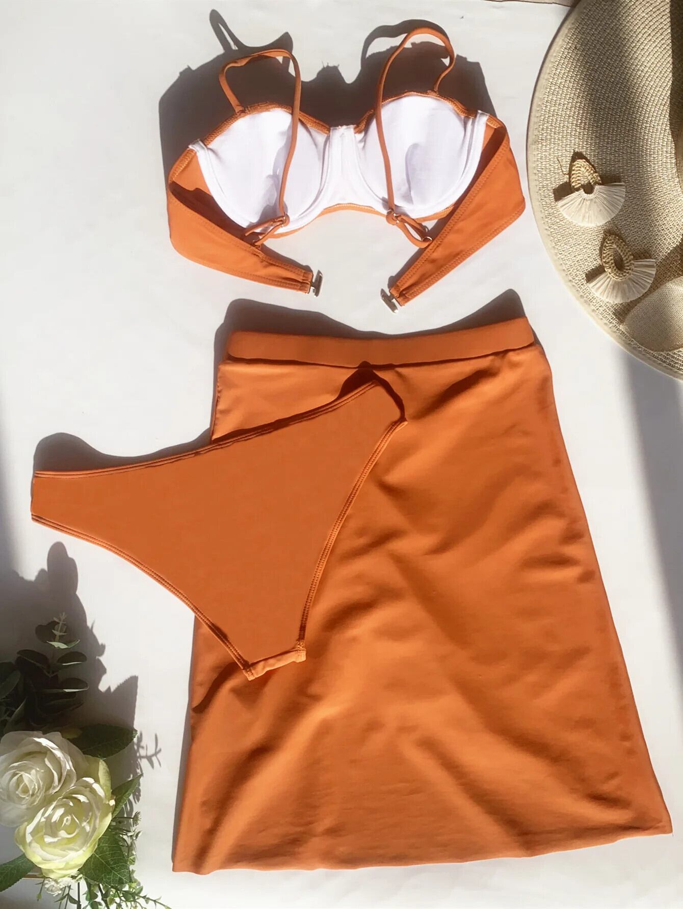 送料無料 オレンジ 2 ピース水着女性 2024 ウエスト巾着ビーチスカートビキニスチールサポートセクシーな背中の開いた水着 AE33232335541880516609