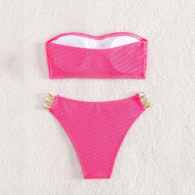 送料無料 2024 ローズレッドストラップレス水着女性 2 ピースビキニウエスト包帯水着セクシーな背中の開いた夏のビーチ水着 サマー 夏物 AE33232335540679154291