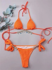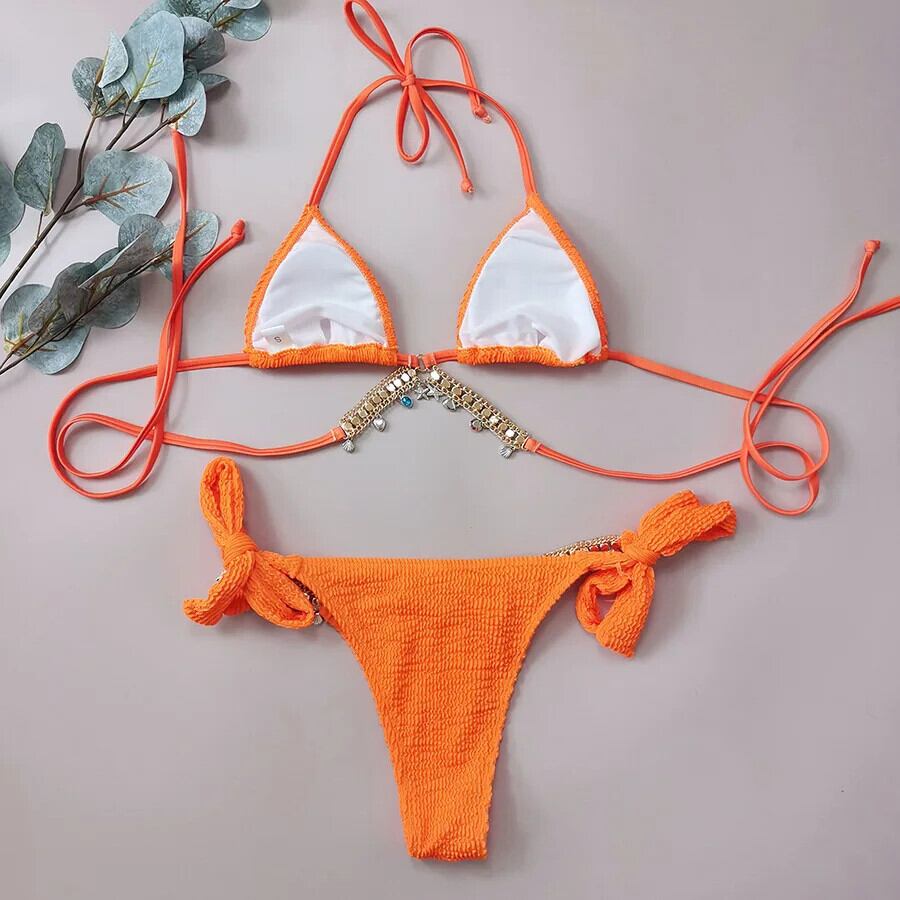 送料無料 ソリッドオレンジ水着女性 2023 セクシーな高級ダイヤモンドビキニレースアップ Tバック 2 ピース水着背中の開いたビーチ水着 YSM230359 ソリッドカラー AE33232335563517162216