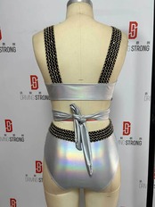送料無料 2024 ホワイト光沢のある水着女性 2 ピースウエスト包帯ビキニクロス V ネック水着夏の背中の開いたビーチ水着 サマー 夏物 Vネック AE33232335539906944708