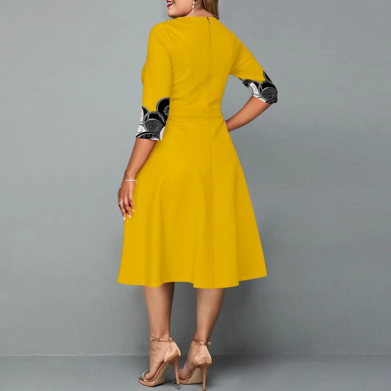 送料無料 ドレス女性オーバーサイズパーティードレストライバルプリントミディ A ラインドレス O ネッククリスマスイブニング衣装 5XL Oネック Aライン AE33232335569053906221