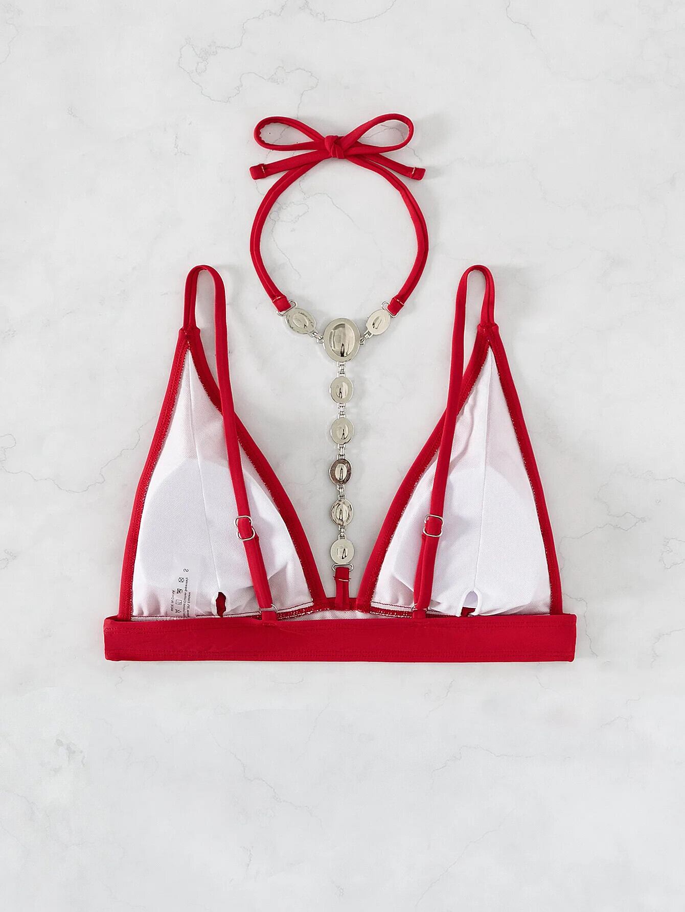 送料無料 高級宝石レッドビキニ女性 2023 セクシーなラインストーンチェーン 2 ピース水着 V ネックビーチ水着ウエスト Tバック Biquini ZMSS030 Vネック AE332323355385491447