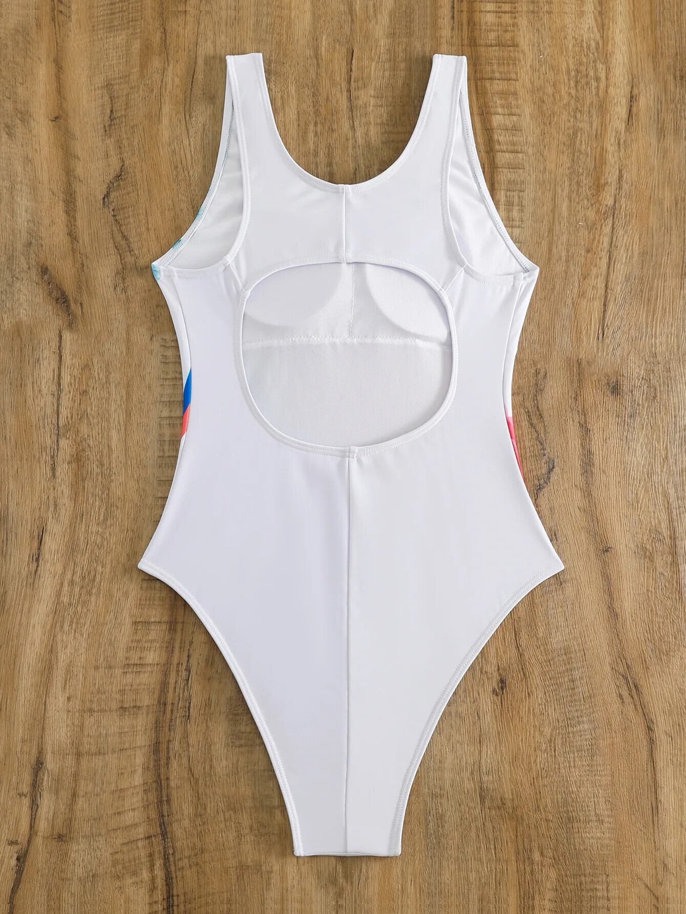 送料無料 2024 セクシーなワンショルダー水着女性、ブルーグリーングラデーションビキニ、U ネックサスペンダー背中の開いたスポーツモノキニ、ビーチウェア AE33232335560681850685