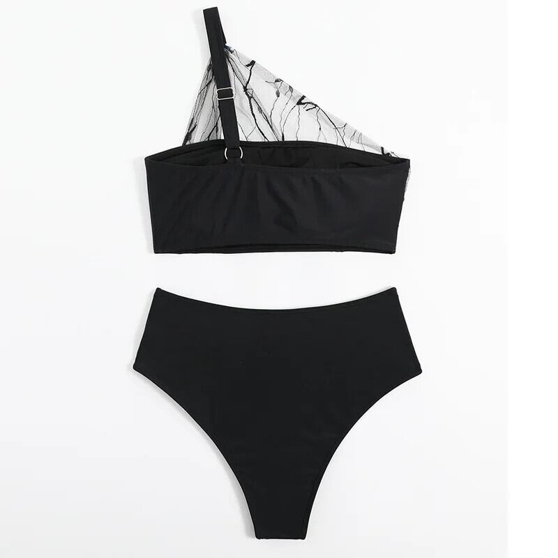 送料無料 蝶ビキニソリッドブラックツーピース水着女性 2023 セクシーなワンショルダーガーゼ水着ウエストビーチウェア OLDL064 ソリッドカラー AE33232335539672264527