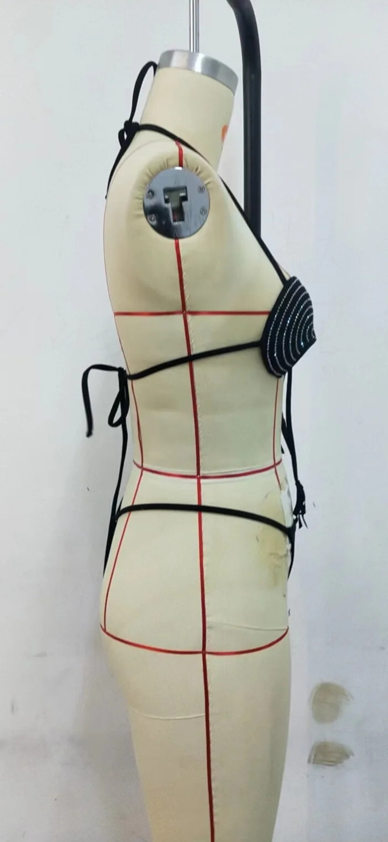 送料無料 セクシーなラインストーンマイクロビキニセット女性 2023 クリエイティブツーピース円形水着レースアップサスペンダー Tバック水着ビーチウェア AE33232335590346675922