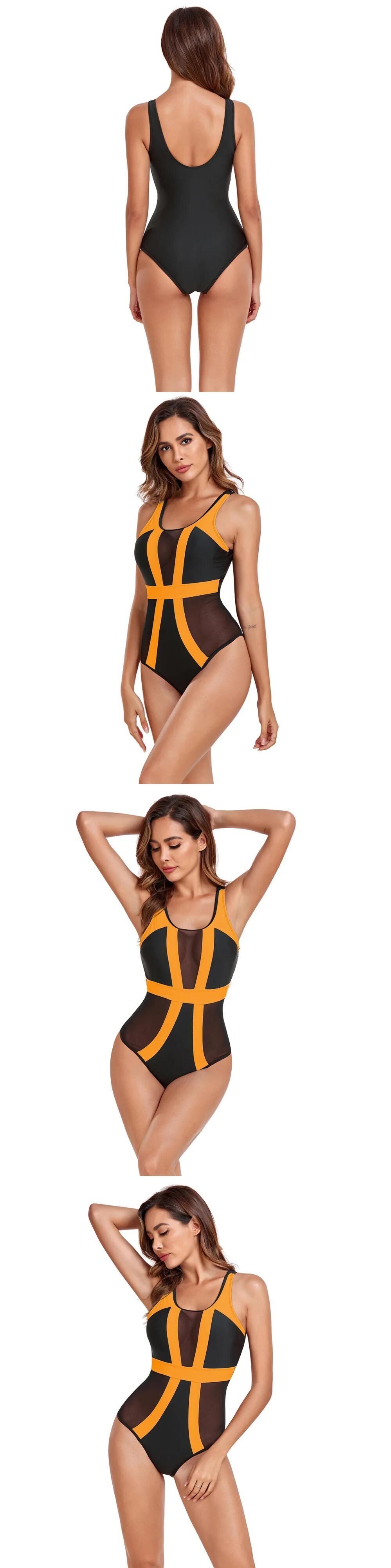 送料無料 2024 夏コントラストカラー水着女性、セクシーなスプライス半透明メッシュワンピースビキニ、U ネックサスペンダー背中の開いたモノキニ サマー 夏物 AE33232335523032650913