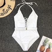 送料無料 2024 セクシーな中空アウトワンピース水着女性固体白赤包帯プッシュアップ背中の開いた水着ウエスト水着モノキニ ホワイト レッド ソリッドカラー AE33232335553623762580
