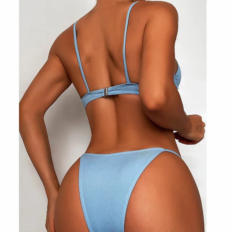 送料無料 2024 夏ブルーソリッドカラーの女性の水着、2 ピースビキニ、ローウエスト Tバック夏サスペンダーレースアップ背中の開いた水着 サマー 夏物 AE33232335544703464516
