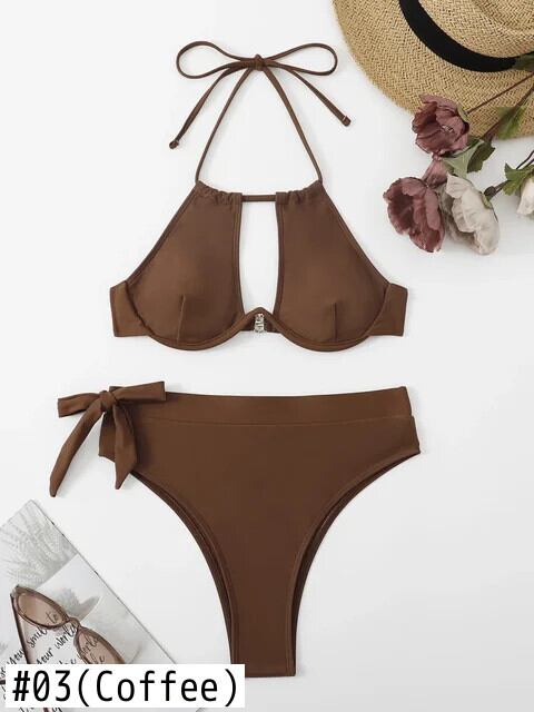送料無料 セクシーなアンダー 2 ピース水着女性 2024 ウエストビキニセクシーな中空アウトホルターバックレス水着夏のビーチウェア サマー 夏物 AE33232335545269071042